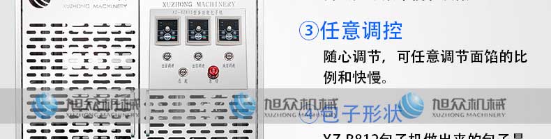 XZ-B812型多功能包子機(jī),它能做的比你想象的多,可生產(chǎn)各種肉包、肉菜包、菜包、小籠包、湯包、生煎包、水晶包、圓饅頭、奶黃包、豆沙包、叉燒包南瓜餅等幾十種包餡制品。