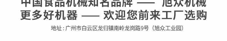 廣州旭眾食品機(jī)械有限公司是一家集科研開發(fā),生產(chǎn)設(shè)計,營銷服務(wù)為一體的現(xiàn)代化生產(chǎn)企業(yè)。現(xiàn)代化生產(chǎn)車間,精湛制造技術(shù),所產(chǎn)機(jī)械歷經(jīng)市場重重考驗,不斷贏得海內(nèi)外客戶的贊譽(yù)。