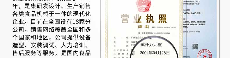 廣州旭眾食品機(jī)械有限公司是一家集科研開(kāi)發(fā),生產(chǎn)設(shè)計(jì),營(yíng)銷服務(wù)為一體的現(xiàn)代化生產(chǎn)企業(yè)?,F(xiàn)代化生產(chǎn)車間,精湛制造技術(shù),所產(chǎn)機(jī)械歷經(jīng)市場(chǎng)重重考驗(yàn),不斷贏得海內(nèi)外客戶的贊譽(yù)。