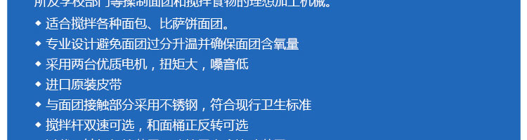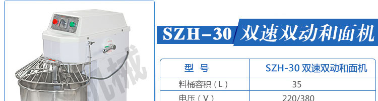 SZH-30型雙速雙動(dòng)和面機(jī),本機(jī)適合攪拌各種面包、包子、饅頭、湯圓、披薩餅面團(tuán),專(zhuān)業(yè)設(shè)計(jì)避免面團(tuán)過(guò)分升溫并確保面團(tuán)含氧量。過(guò)載、缺相保護(hù)裝置,防護(hù)罩安全連動(dòng)裝置。