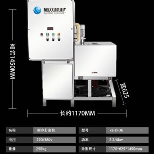 XZ-ZL-36制冷打漿機(jī),滿足大容量設(shè)計,大容量桶不銹鋼刀俎、一次性可打漿530KG,加厚不銹鋼材。