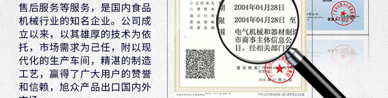 廣州旭眾食品機械有限公司是一家集科研開發(fā),生產(chǎn)設(shè)計,營銷服務(wù)為一體的現(xiàn)代化生產(chǎn)企業(yè)?,F(xiàn)代化生產(chǎn)車間,精湛制造技術(shù),所產(chǎn)機械歷經(jīng)市場重重考驗,不斷贏得海內(nèi)外客戶的贊譽。