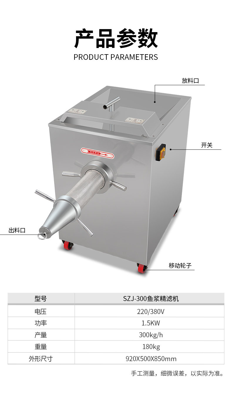 SZJ-300魚漿精濾機(jī),商用創(chuàng)業(yè)魚漿精濾機(jī),用于配套魚肉采肉機(jī)進(jìn)行魚肉過濾雜質(zhì)。節(jié)省人工開支,人工加工魚漿,效率慢剔除魚細(xì)骨,不干凈,有了魚漿精濾機(jī),一人就可以很快制作多種魚漿。